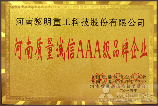 • 河南質(zhì)量誠信AAA級(jí)品牌企業(yè)