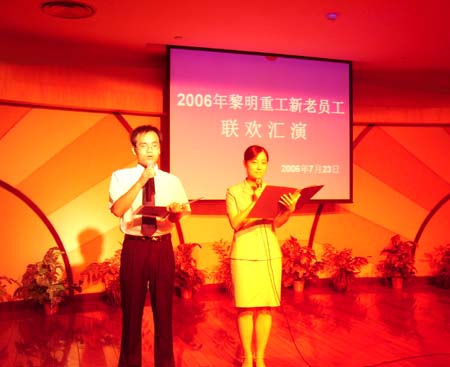 7月22日晚“2006年黎明重工新老員工聯歡匯演”隆重舉行。公司董事長楊總,研究所總工程師白工等公司領導觀看了匯演。新員工自編、自排、自演了豐富多彩的文藝節目,老員工也踴躍表演節目,新老員工同臺演出,其樂融融。
