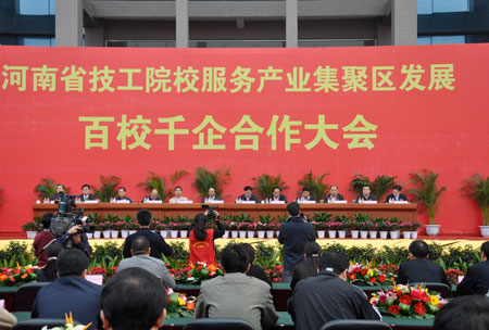 隨著河南省近年來經(jīng)濟社會的發(fā)展,以及正在全力推進(jìn)的產(chǎn)業(yè)集聚區(qū)建設(shè)等,對各類人才尤其是企業(yè)急需的大規(guī)模技能人才的需求日益顯現(xiàn)。“百校千企”合作大會正是搭建了這樣一個培養(yǎng)優(yōu)良技能人才的人力資源開發(fā)平臺。通過組織全省百所技工院校與千家大中型企業(yè)特別是產(chǎn)業(yè)聚集區(qū)企業(yè)建立合作關(guān)系,整合利用企業(yè)、學(xué)校資源,實現(xiàn)產(chǎn)學(xué)結(jié)合、優(yōu)勢互補,形成校企合一、工學(xué)一體的技能人才培養(yǎng)新機制,進(jìn)而提升區(qū)域的整體經(jīng)濟發(fā)展水平。