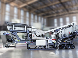 700-900mm的原料進(jìn)入J45顎破履帶移動(dòng)破碎站進(jìn)行粗碎,而后粗碎后的物料進(jìn)入I44R反擊破履帶移動(dòng)破碎站進(jìn)行二段破碎。二段破碎后,大于31.5mm的物料通過(guò)循環(huán)篩返料皮帶送回反擊破繼續(xù)破碎,31.5mm以下的混合料輸送到S130履帶式篩分移動(dòng)站,經(jīng)過(guò)三層篩網(wǎng)的分離,最終分出0-5/5-10/10-20/20-31.5四種成品料。