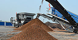 將150mm的河石送入純篩分移動站KS1860-1中,電動機經三角帶使激振器偏心塊產生高速旋轉,篩上物料在傾斜的篩面上受到篩箱傳遞的沖量而產生連續的拋擲運動,小于篩孔的顆粒通篩,排出0-10mm、10-20mm、20-40mm三種大小的成品。