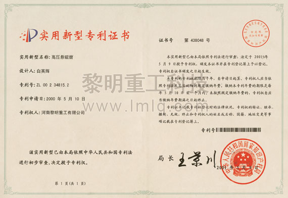 • 高壓懸輥磨粉機專利號:ZL 00234815.2 >>查看證書