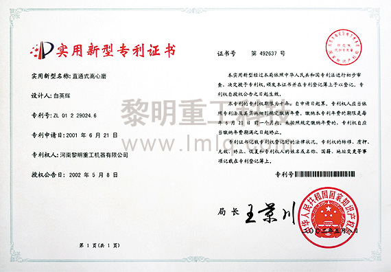 • 直通式離心磨粉機 專利號:ZL 200520030598.5 >>查看證書