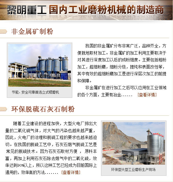 該細度范圍內的重鈣粉加工可選擇黎明重工新專利產品歐版磨機和立式磨機等產品,系統均為干法生產,實現自磨自選...