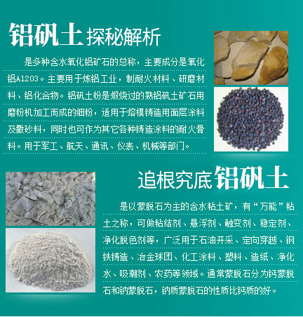 是多種含水氧化鋁礦石的總稱,主要成分是氧化鋁Al2O3。主要用于煉鋁工業(yè),制耐火材料、研磨材料、鋁化合物。鋁礬土粉是煅燒過的熟鋁礬土礦石用磨粉機(jī)加工而成的細(xì)粉,適用于熔模鑄造用面層涂料及撒砂料,同時(shí)也可作為其它各種鑄造涂料的耐火骨料。用于軍工、航天、通訊、儀表、機(jī)械等部門。