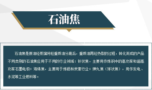 石油焦是原油經蒸餾將輕重質油分離后,重質油再經熱裂的過程,轉化而成的產品不同類別的石油焦應用于不同的行業領域:針狀焦,主要用作煉鋼中的高功率和大功率石墨電極;海綿焦,主要用于煉鋁和炭素行業;彈丸焦(球狀焦),用作發電、水泥等工業燃料等。