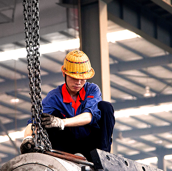 趙師傅整日和車(chē)間里的大家伙們“交鋒”。不足10℃的生產(chǎn)車(chē)間里,他正在固定10多噸重動(dòng)顎體上的吊裝環(huán),鼻子上滲滿汗珠。大家伙們的未來(lái)他不在意,他更在乎的是他們的現(xiàn)在,能不能對(duì)得起自己的“手藝”。