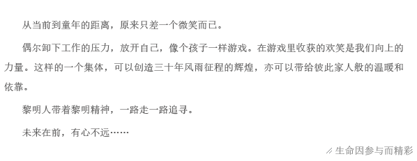 看起來些許幼稚的游戲卻讓一群人脫下工裝,如孩童般歡呼跳躍。和有趣的人一起做有趣的事,快樂從未這樣簡單過。