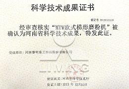 河南省科學技術(shù)成果獎(具有隔振結(jié)構(gòu)的懸輥磨粉機)