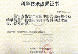 河南省科學技術(shù)成果獎(立軸沖擊式破碎機傳動軸承裝置)
